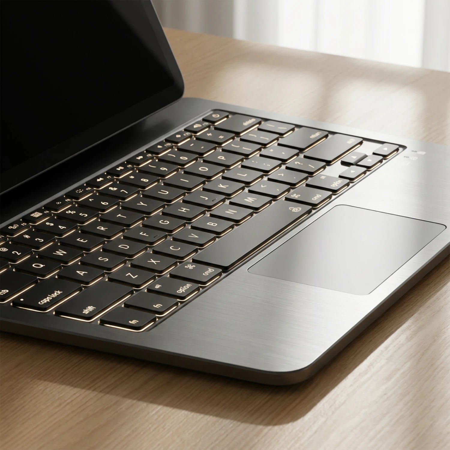O trackpad oferece controle preciso com gestos multi-toque. Navegue, deslize e clique com fluidez e precisão profissional.