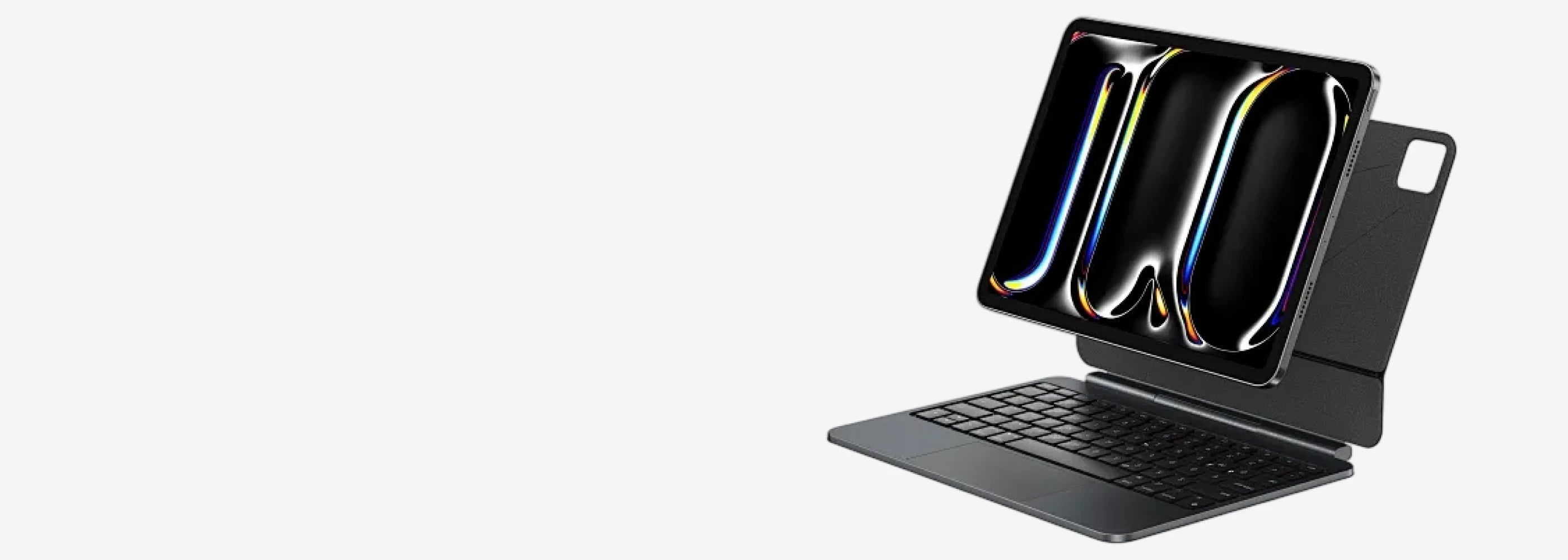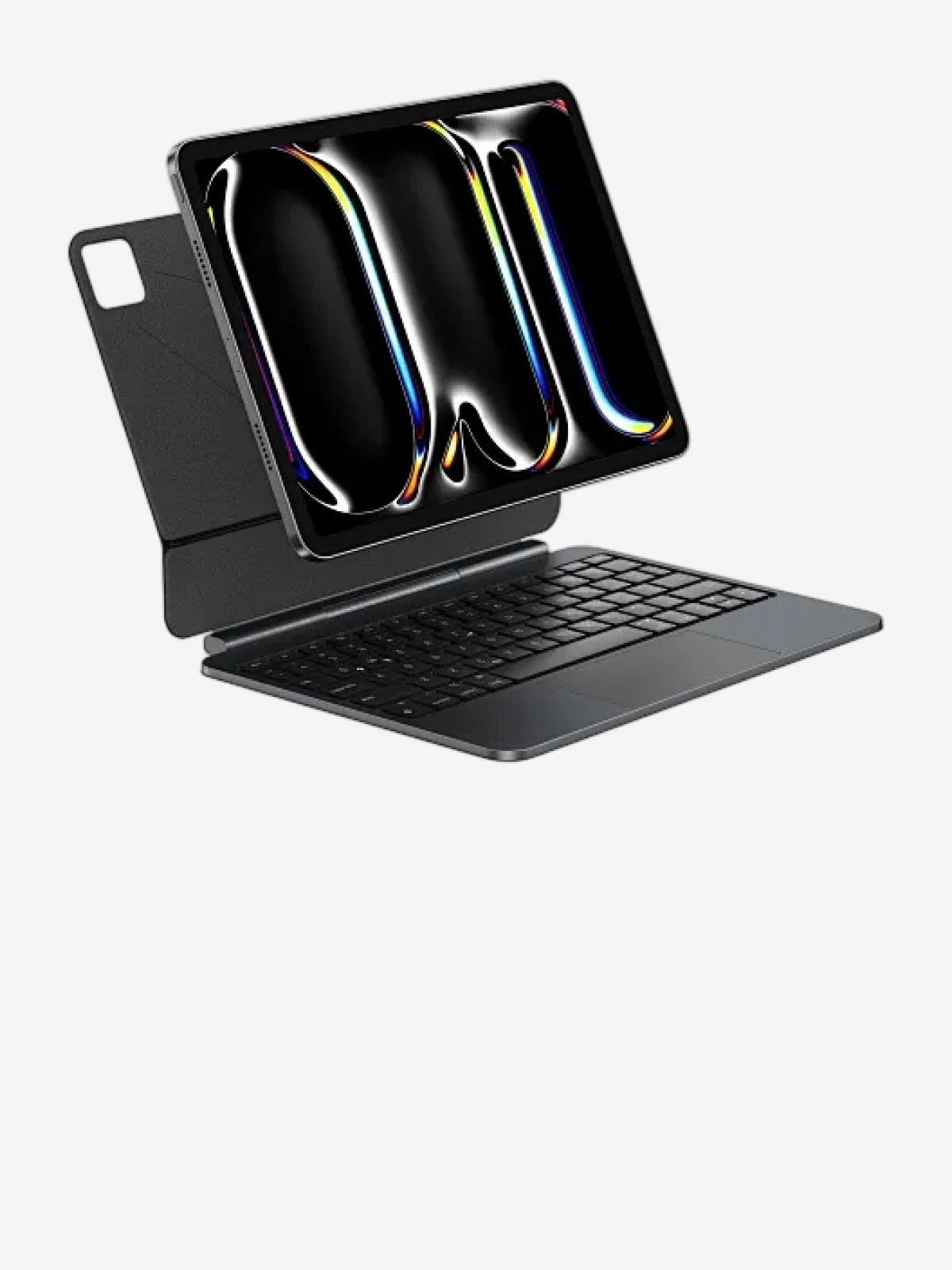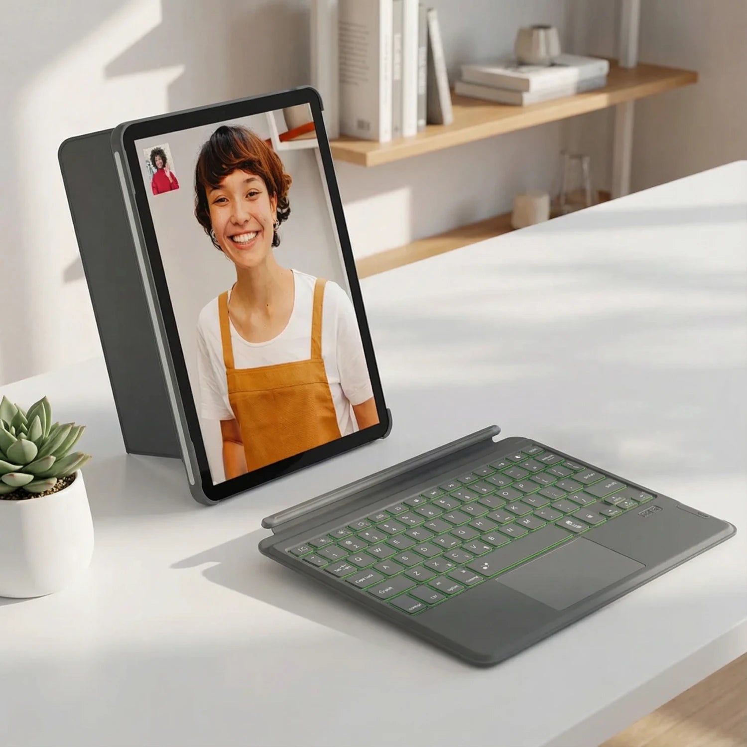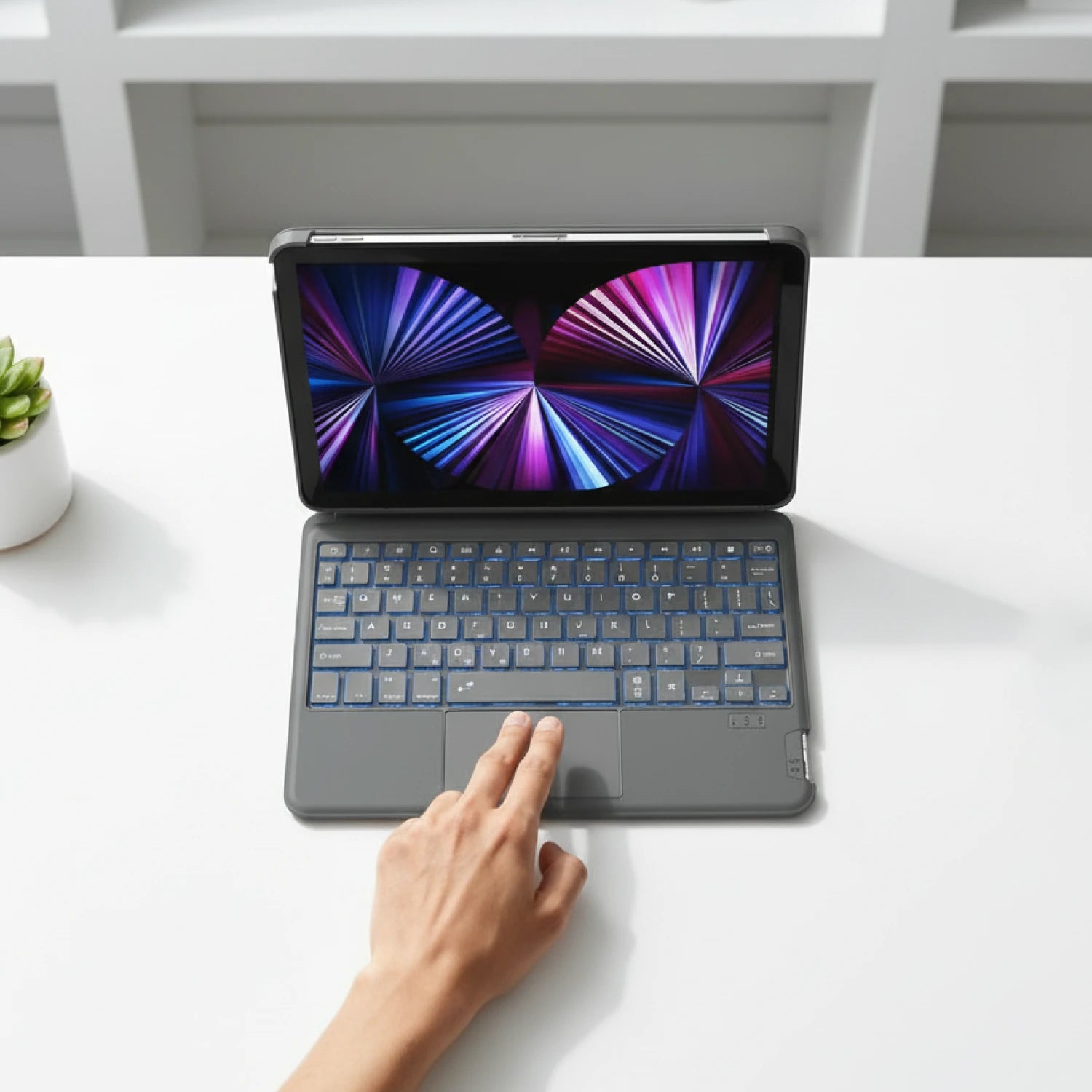 O teclado magnético é removível, permitindo alternar entre produtividade total e uso leve do iPad.